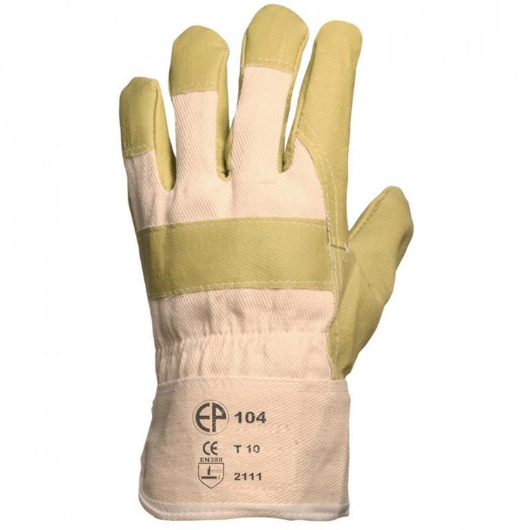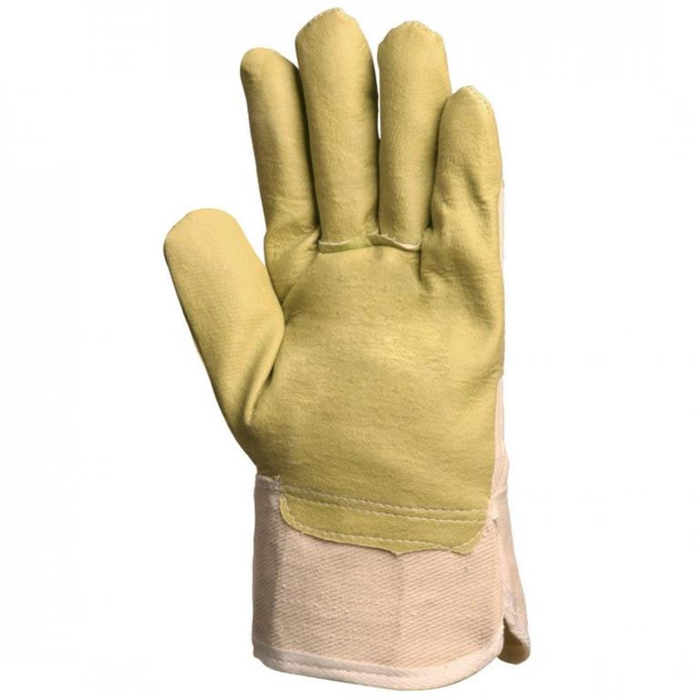 PVC/NITRIL SÁRGA MŰBŐR KESZTYŰ: • sárga műbőr (PVC/nitril) alapanyagú, egybeszabott, tenyérfolt nélküli kesztyű • fehér vászon kézhát és mandzsetta • artéria-, körömés ökölcsontvédő • pamut tenyérbélés • jobb szakítószilárdsági és vízállósági tulajdonságok • MÉRET: 10-es • CSOMAGOLÁS: 120/12 • EU szabvány: EN420, EN388: 2111