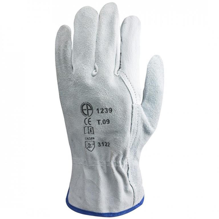 BIVALYBŐR TENYERŰ BŐRKESZTYŰ: • szürke bivalybőr tenyér • marhahasíték kézhát • felső csuklógumírozás • nagy igénybevételre tervezett, komfortos védőkesztyű • MÉRET: 8-as • CSOMAGOLÁS: 120/10 • EU szabvány: EN420, EN388: 3122