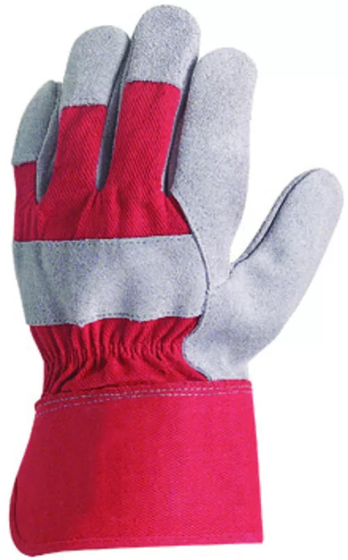 * Szürke marhahasíték rakodókesztyű * Pamut tenyérbélés, piros textil hát és mandzsetta * artéria-, köröm- és ökölcsontvédő * 8 cm-es biztonsági mandzsetta EN 388:2016 3133x