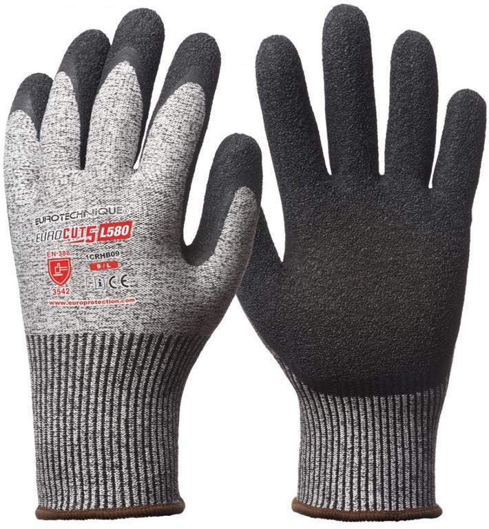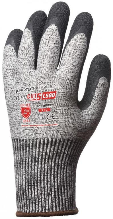 EUROCUT 5 L580 FEKETE KREPP LATEX KESZTYŰ: • 13-as kötésű, legmagasabb színtű szakítás- és kopásállóságú, szúrásbiztos illetve maximális 5-ös szinten vágásbiztos HPPE (high performance PE) • üvegszál alapanyagú védőkesztyű • tenyerén fekete krepp latex mártott védőkesztyű megnövelt élettartammal • könnyű, extra kényelmes, teljesen kézre simuló formai kialakítás, extra csúszásbiztossággal száraz és nedves környezetben • gumírozott, rugalmas mandzsetta • széles méretszortiment • MÉRET: 7-es • CSOMAGOLÁS: 50/5 – páranként külön csomagolva • EU szabvány: EN420:2003 • A1:2009, EN388: 2003 3542