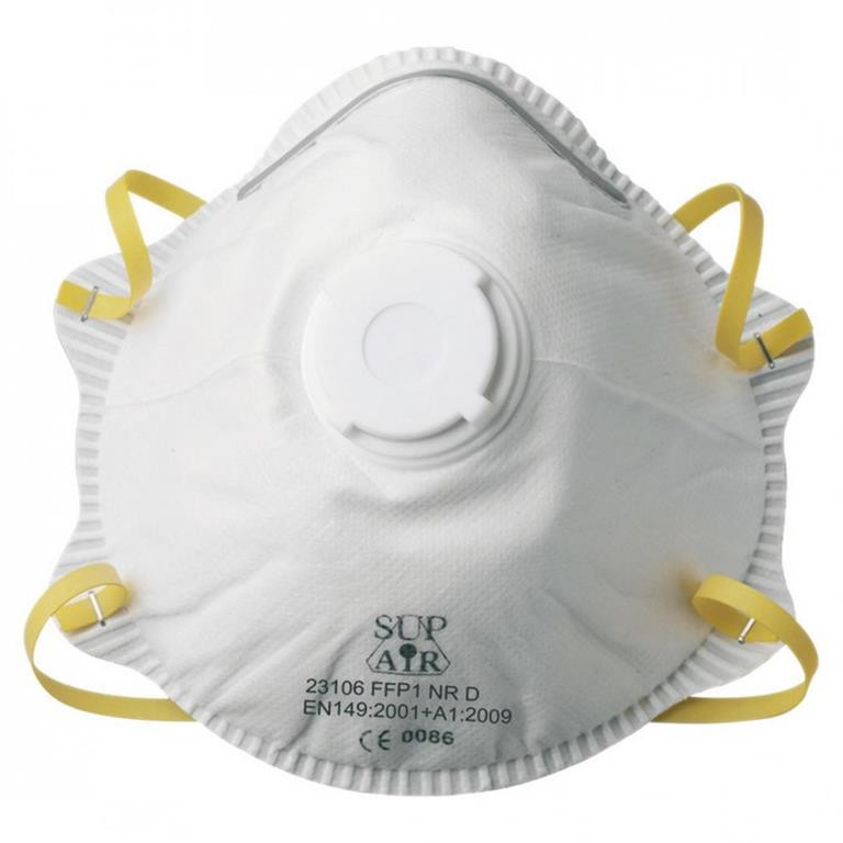 SUPAIR 23106 FFP1 NR D SZELEPES RÉSZECSKESZŰRŐ MASZK: • inert porok, valamint nem veszélyes szilárd és folyékony részecskék ellen (pl. cement, cellulóz, porcelán-kaolin, gumi, vasreszelék, szénpor, növényi olaj, liszt) • D jelölése igazolja, hogy a részecskeszűrő megfelelt a dolomit teszt eredményének, kis légzési ellenállás megtartása mellett garantálva az eltömődés nélküli, hosszabb idejű használhatóságot • kónusz forma, alumínium orrcsipesz, kényelmes felfekvést segítő szivacscsík; nem allergén • külső pp-SMS, belső poliészter réteg, elektrosztatikus polipropilén közszűrő • felhelyezés két rugalmas gumipánttal • névleges védelmi tényező: 4 EH • 23106: kilégzést segítő szeleppel • SÚLY: 15 g • CSOMAGOLÁS: 120/10 • EU szabvány: EN149:2001 • A1:2009