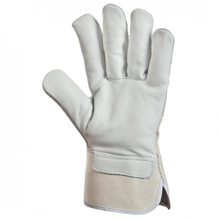 FEHÉR KESZTYŰ: • puha, szürke, 1,1 mm vastag színmarhabőr tenyér nagy igénybevételre • fehér vászon kézhát és mandzsetta • artéria-, hasítékbőr köröm- és ökölcsontvédő • pamut tenyérbélés • MÉRET: 10-es • CSOMAGOLÁS: 120/12 • EU szabvány: EN420, EN388: 3133