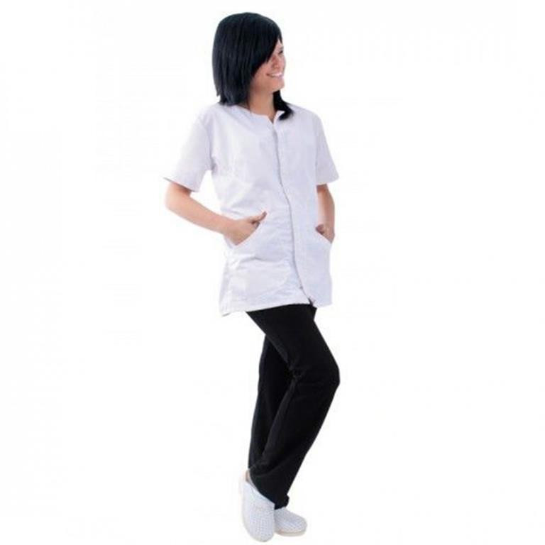 NŐI FEHÉR TUNIKA: • 245 g/m² vastag, lánckötésű, 65% poliészter, 35% pamut alapanyag • karcsúsított fazon, két oldalzseb • rövid ujjú, gallér nélküli, cipzáras, jól szellőző köpeny, tartós vászonból • szín: fehér • méret: S • EU szabvány: EN340