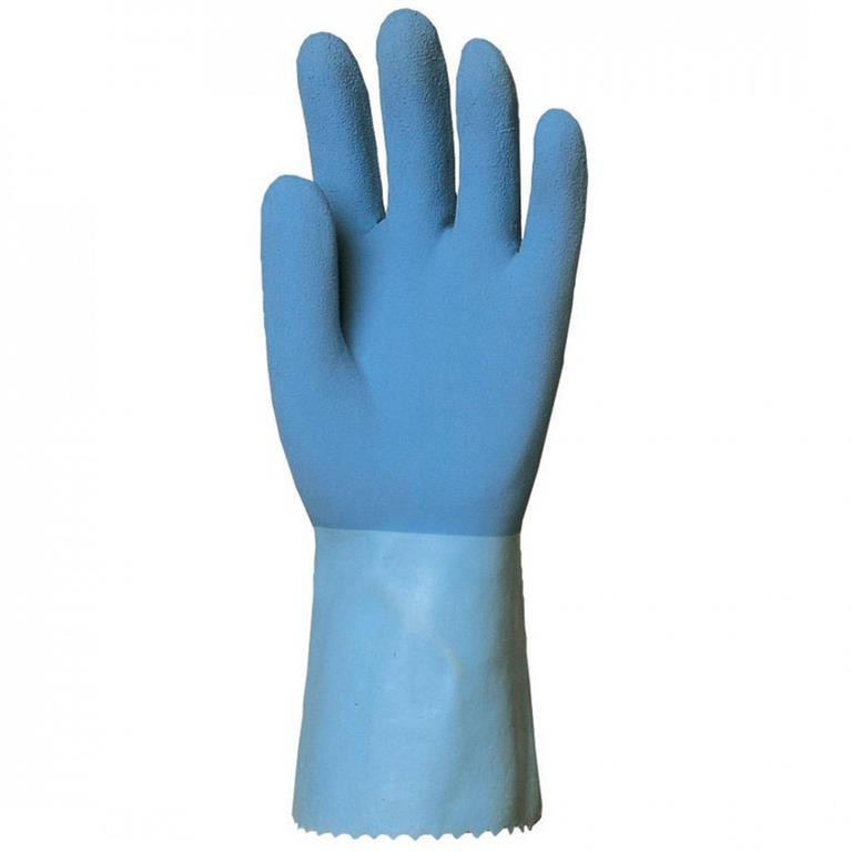 CSÚSZÁSMENTES KÖRNYEZETBARÁT MÁRTOTT KÉK LATEXKESZTYŰ: • pamut anyagra mártott kék latex • csúszás elleni érdesített kézfejrész • sav-, lúg - és vegyszerálló • környezetkímélő, bőrbarát, vízbázisú oldószer- és szilikonmentes technológia • 1,3 mm vastag, 30 cm hosszú, rugalmas • MÉRET: 9-es • CSOMAGOLÁS: 144/12 • EU szabvány: EN420, EN388: 4131, EN374-1, 374-2