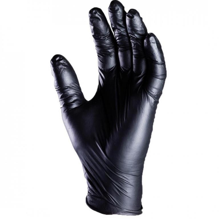 EGÉSZSÉGÜGYI EGYSZERHASZNÁLATOS FEKETE PÚDER NÉLKÜLI NITRILKESZTYŰ: • egészségügyi, egyszer használatos nitril kesztyűk • vegyszerálló, rugalmas, mindkét kézen használható • mikroorganizmusok elleni védelem • folyadékok behatolásával szembeni védelem • fekete színű, púdermentes változat • 0,08 mm vastag és 24,5 cm hosszú • AQL: 1,5 • MÉRET: 8-as • CSOMAGOLÁS: 100 db/doboz • EU szabvány: EN420, EN 374-2