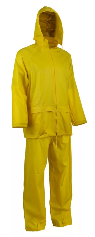 SÁRGA ORKÁNRUHÁZAT: • poliamidra mártott lágy, rugalmas PVC • varrott plusz hegesztett • vízhatlan szellőzőnyílás a háton, gallérba rejthető kapucni • vékony, nagy szakítószilárdságú víz- és szélálló anyag • hidegállóság: -20°C • két külső zseb, gumírozott mandzsetta • PLUVIO KÉTRÉSZES ruha (kabát+deréknadrág) kivitel • szín: SÁRGA • méret: S • EU szabvány: EN340