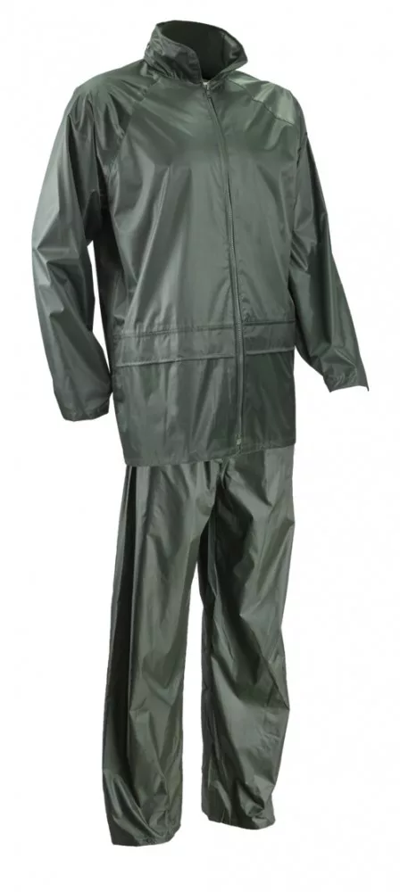 ZÖLD ORKÁNRUHÁZAT: • poliamidra mártott lágy, rugalmas PVC • varrott plusz hegesztett • vízhatlan szellőzőnyílás a háton, gallérba rejthető kapucni • vékony, nagy szakítószilárdságú víz- és szélálló anyag • hidegállóság: -20°C • két külső zseb, gumírozott mandzsetta • PLUVIO KÉTRÉSZES ruha (kabát+deréknadrág) kivitel • szín: zöld • méret: S • EU szabvány: EN340