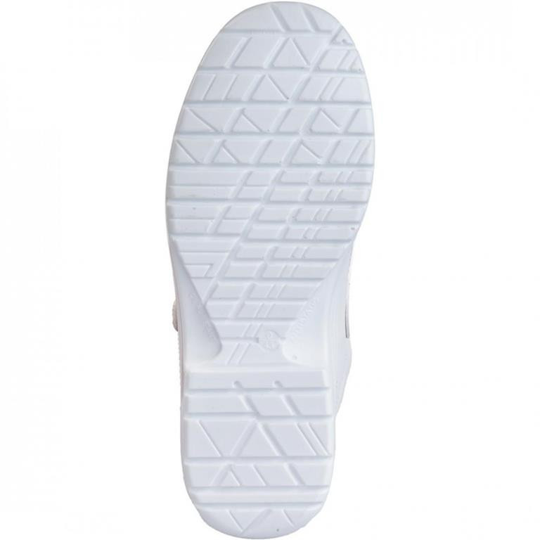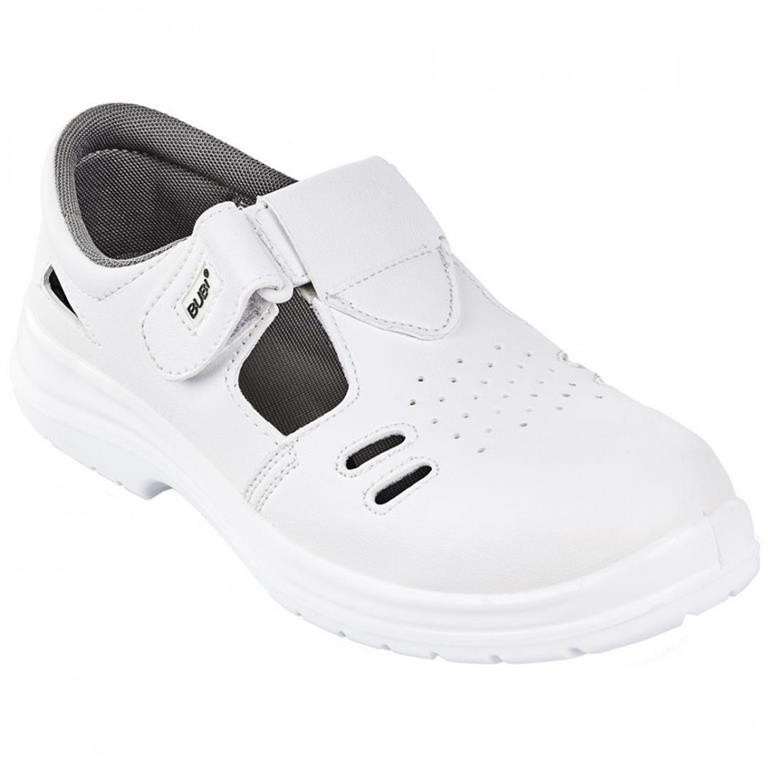 BUBI (O1 SRC) SZANDÁL: • fémmentes, tépőzáras szandál • folyadékoknak jobban ellenálló, kiválóan szellőző fehér mikroszálas felsőrész • antisztatikus, olajálló, hajlékony, kétrétegű, fehér PU talp, ütődéselnyelő sarokkal • nedves acél és kerámia felületekre bevizsgált, SRC fokú csúszás elleni védelem, kényelmes talpbélés • könnyű súlyú, egészségügyi, élelmiszeripari munkákhoz, egész napos viseletre ajánlott védőlábbeli • szivaccsal párnázott bokarész, szellőzőnyílások • méret: 35 • EU szabvány: EN ISO 20344, EN ISO 20347